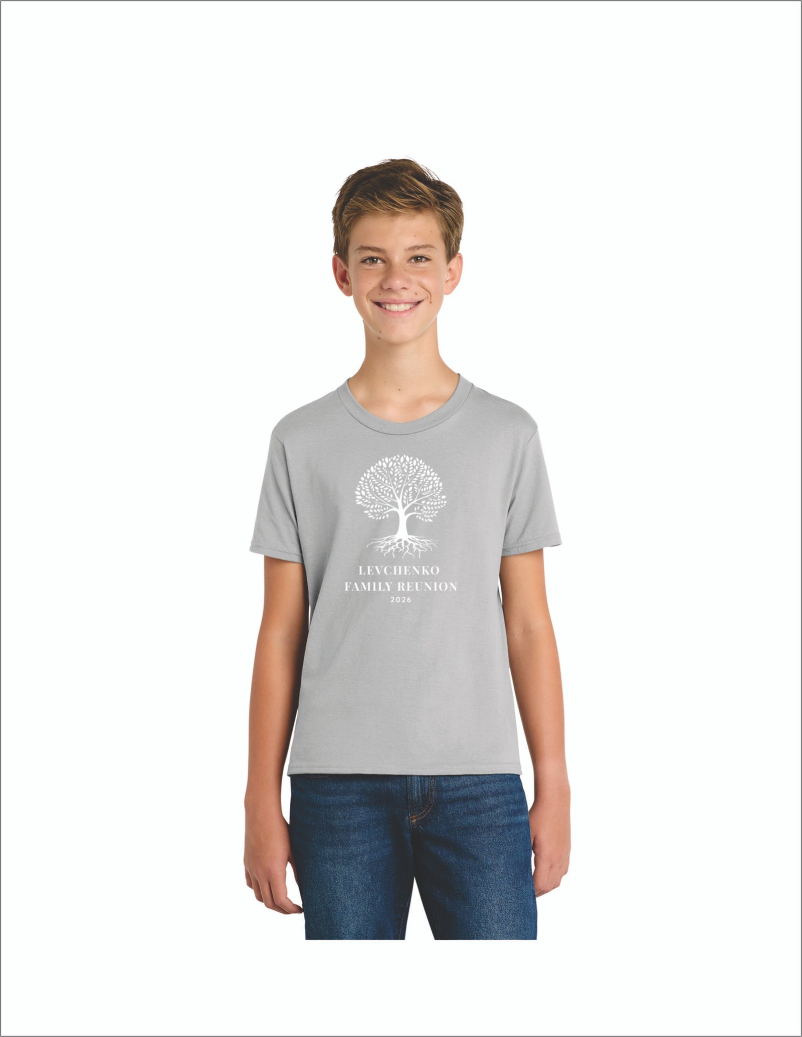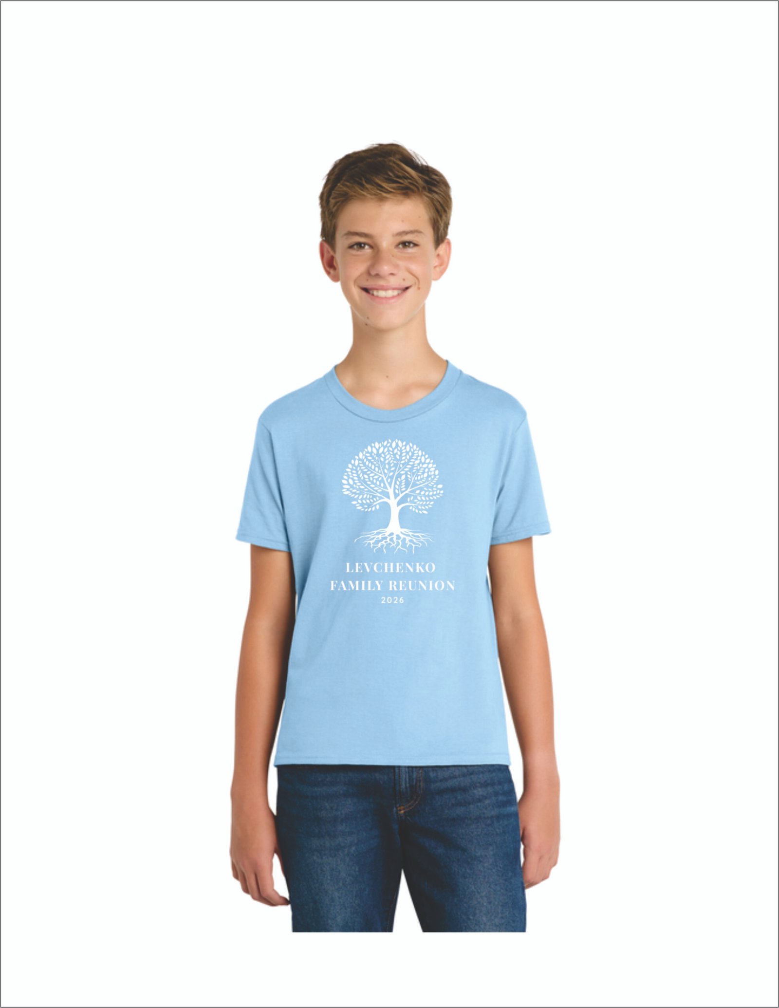 PC450Y Port & Co™ Youth Fan Favorite™ Tee with Levchenko Family Reunion logo on front of shirt