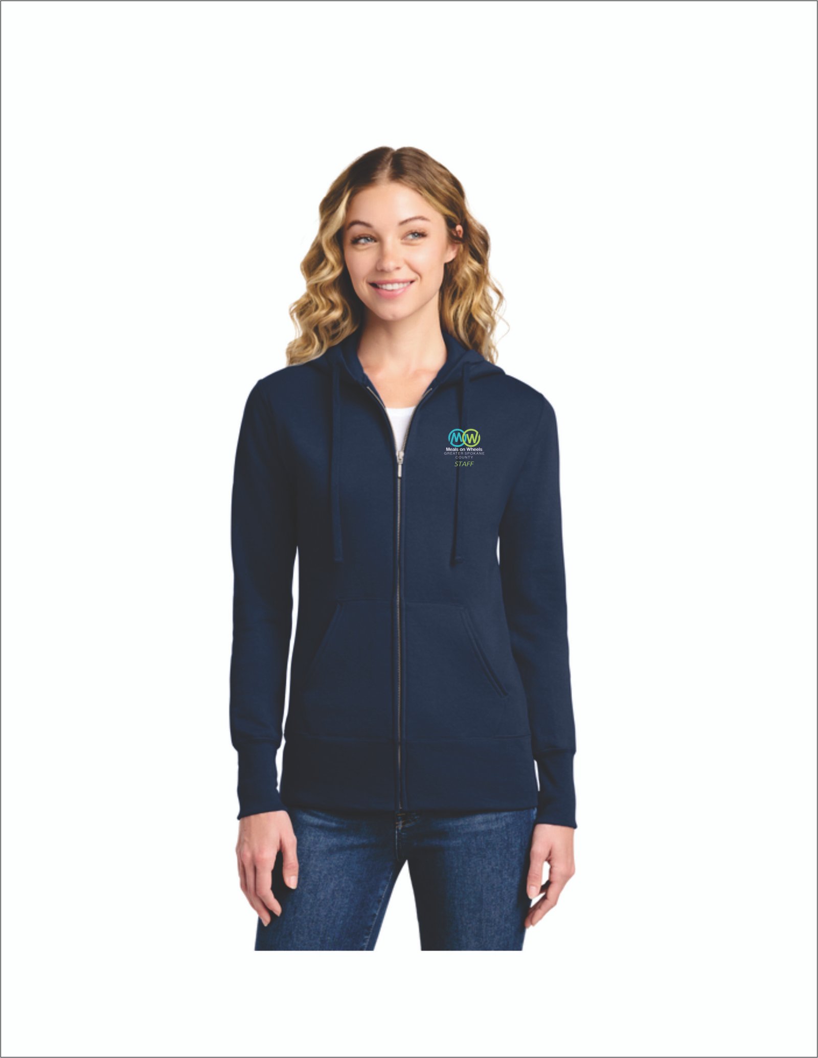 LPC78H Port & Co™ Women’s Core Fleece Full-Zip Hooded Sweatshirt with meals on wheels logo on left chest of hoodie
