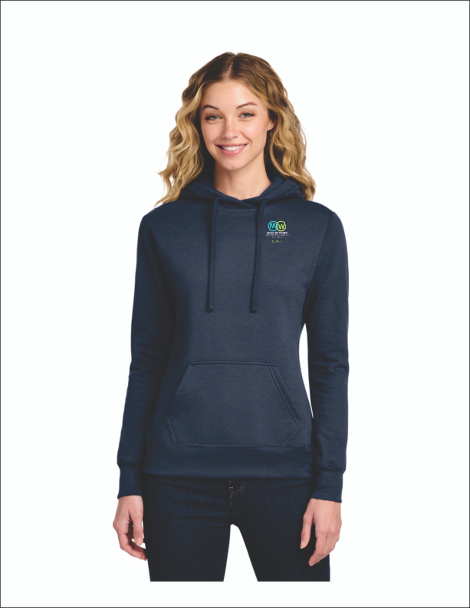 LPC78H Port & Co™ Women’s Core Fleece Pullover Hooded Sweatshirt with meals on wheels logo on left chest of hoodie